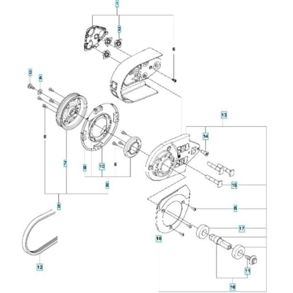 The Belt Guard and Pulley 14" Assembly is designed for the Husqvarna K970 Rescue III Disc Cutter, ensuring optimal performance and safety. This assembly includes key components like the belt guard and pulley, which work together to protect the belt system and maintain efficient operation. Genuine Husqvarna parts ensure compatibility and durability.