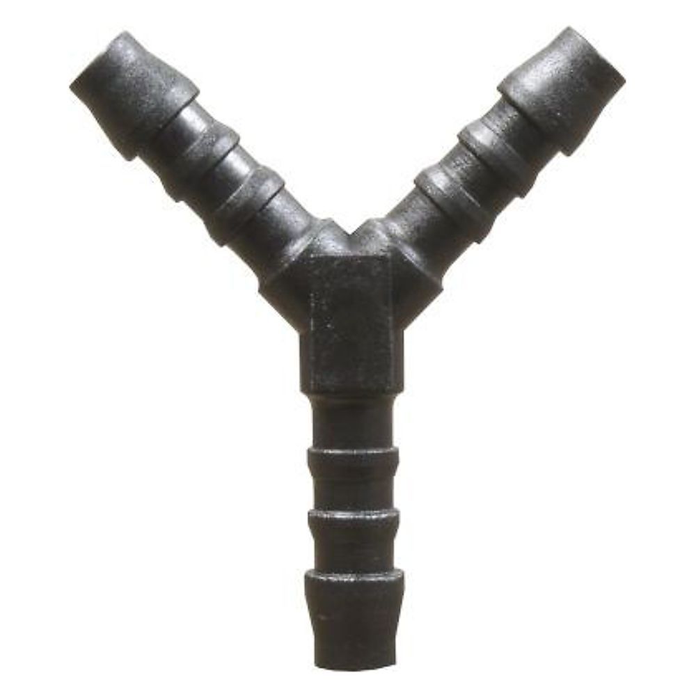 Y-piece union, Y barbed hose mender, 3-way hose adaptor, branch Y coupler, tri-branch fuel connector, Y-line joiner, Y hose splicer, Y-form pipe adaptor.