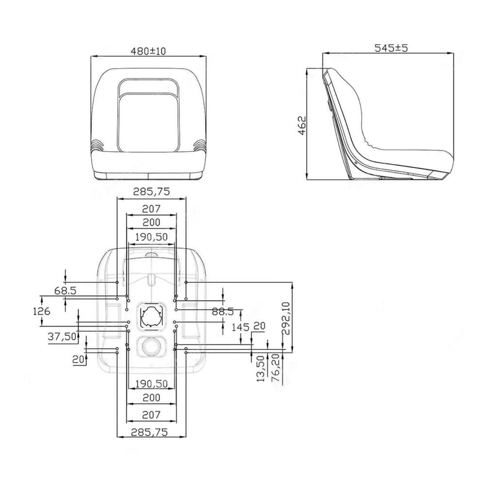 The Black PVC Plastic Pan Seat (OEM No. 084 600) is a robust replacement seat for tractors and small vehicles. It uses a durable black PVC plastic pan with a one-piece foam cushion to deliver dependable comfort through long working days. The weatherproof construction and integrated drainage help keep the seat usable in wet conditions, while the smooth surface is easy to wipe clean after muddy or dusty jobs. A generous 480 mm seat width (18.9 inches) supports a wide range of operators. The multi-hole mounting pattern aids straightforward fitting to existing bases on many tractors and compact utility machines, making it a practical choice for restoring comfort and safety on older equipment or upgrading a tired, cracked, or waterlogged seat.