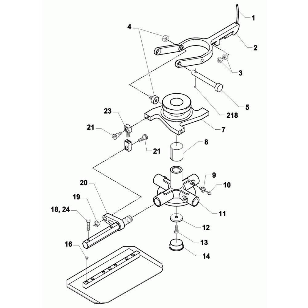 The Blade Assembly for the Wacker CT36EDT Trowel is designed to ensure optimal performance and durability. This assembly includes genuine Wacker Neuson parts, crucial for maintaining the electric trowel's efficiency. Components such as blades, brackets, and fasteners work together to provide a smooth finish on concrete surfaces. Regular maintenance with these parts helps extend the trowel's service life.