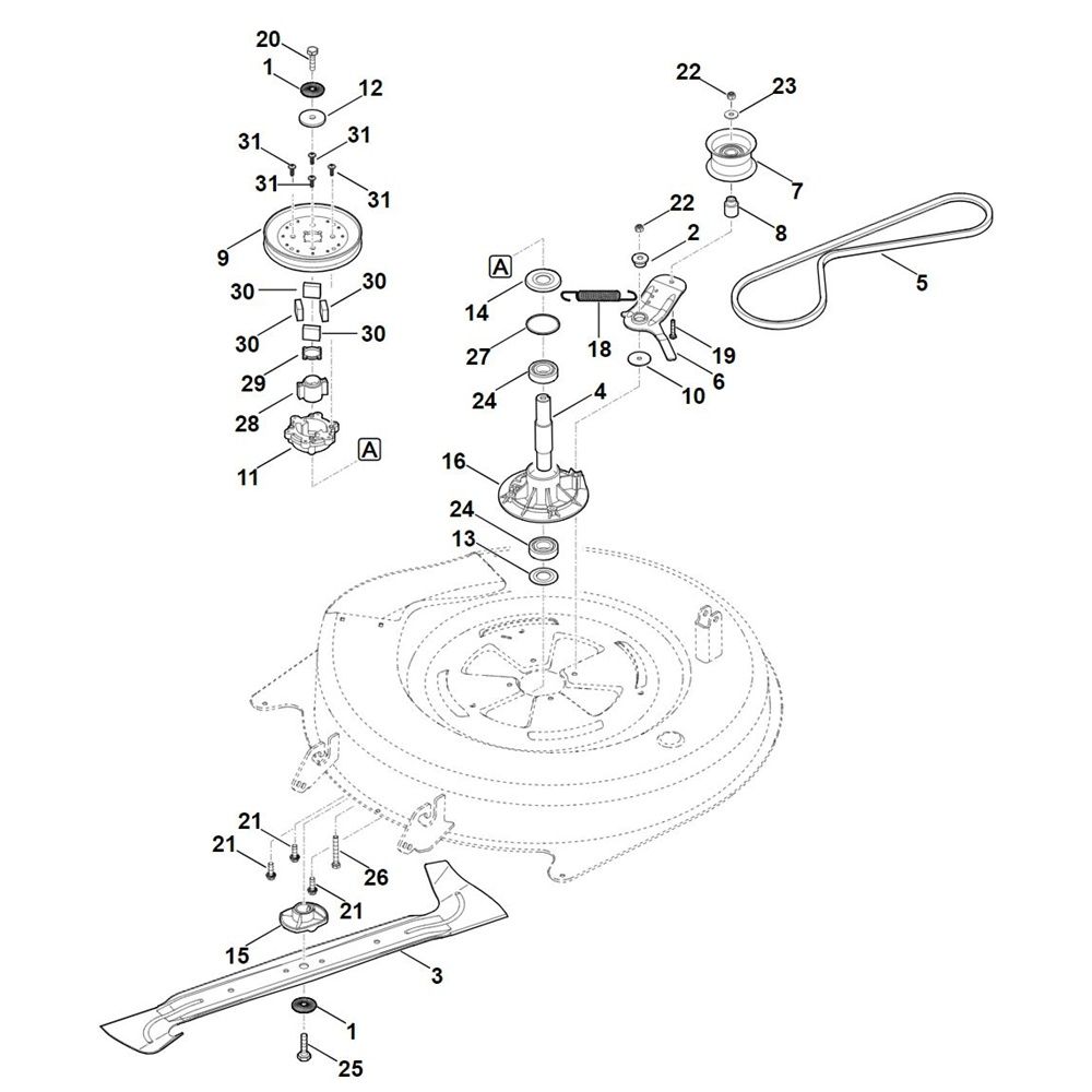 The Blade Drive for the Stihl RT 4082.1 Ride on Mower ensures efficient power transmission to the cutting blades, maintaining optimal mowing performance. This genuine Stihl component is crucial for the smooth operation of your mower, helping to deliver precise cuts and reliable functionality. Designed for durability and compatibility, it supports the mower's overall efficiency.