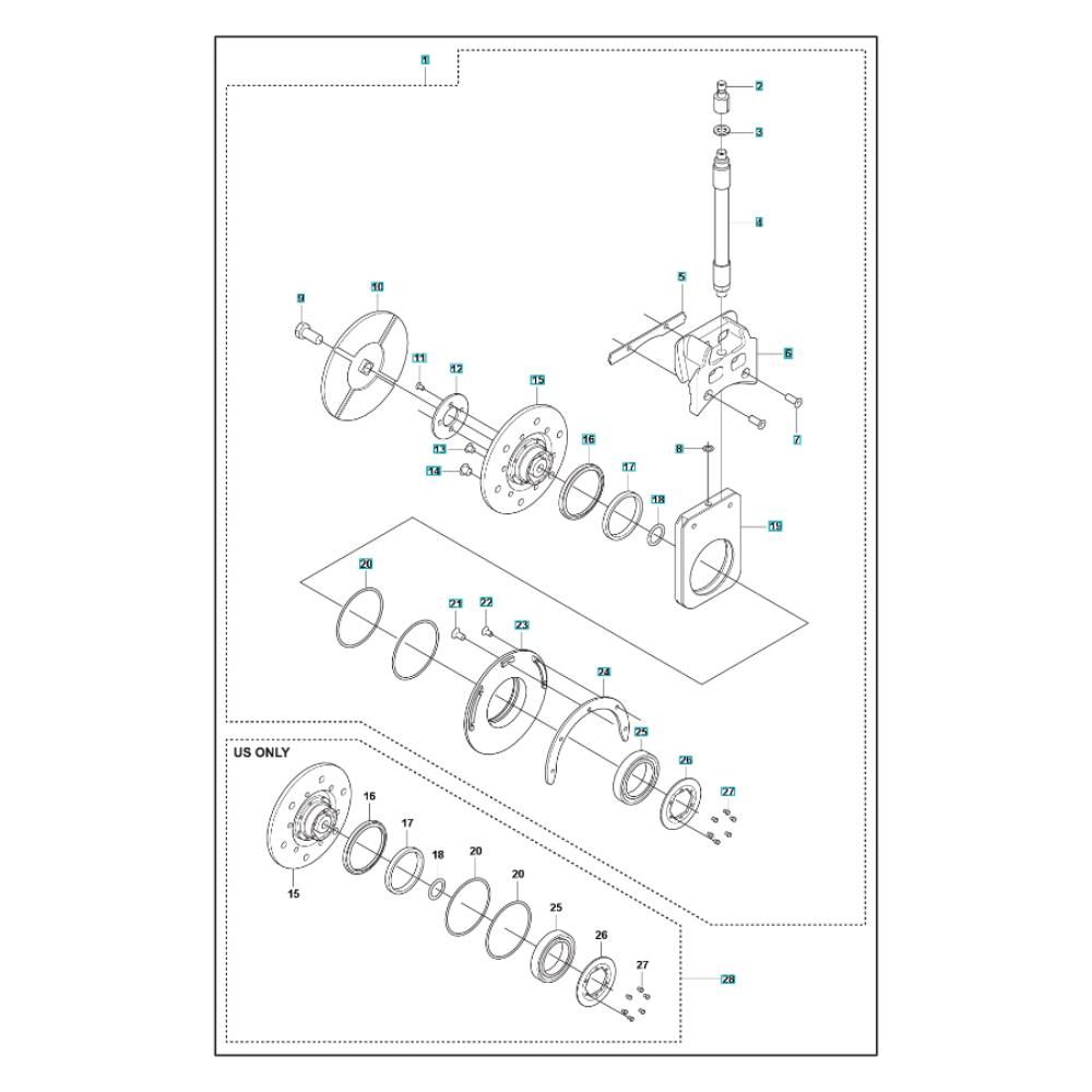 The Blade Flange Assembly for the Husqvarna WS 463 Wall Saw is crucial for securing the blade during operation, ensuring precise cuts and optimal performance. This assembly includes components such as flanges, bolts, and washers, all designed to maintain the integrity and safety of the saw. Ideal for routine maintenance and repairs, it helps extend the lifespan of your equipment.