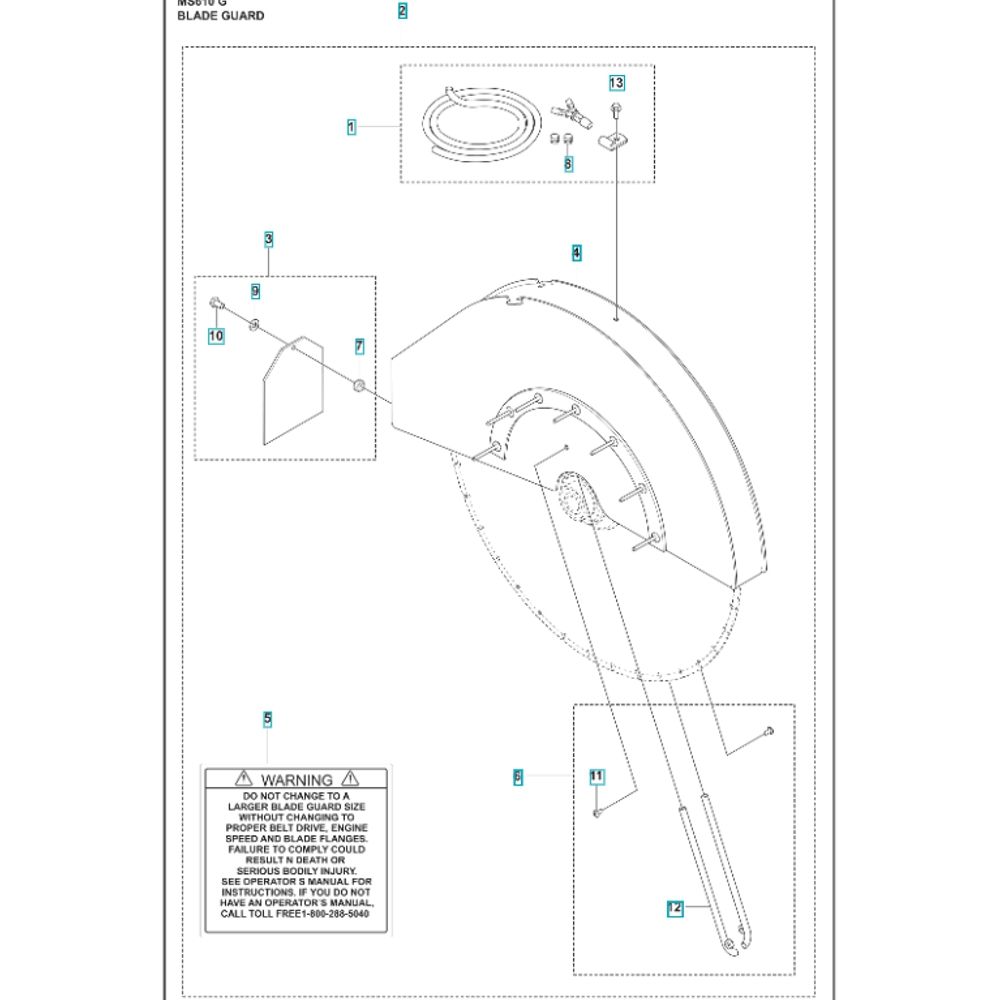 The Blade Guard Assembly for the Husqvarna MS 610 G Masonry Saw is designed to enhance safety and performance. This assembly helps protect users from debris and ensures precise cutting. It includes essential components such as the guard, mounting brackets, and fasteners. Genuine Husqvarna parts ensure compatibility and durability, maintaining the saw's optimal function.