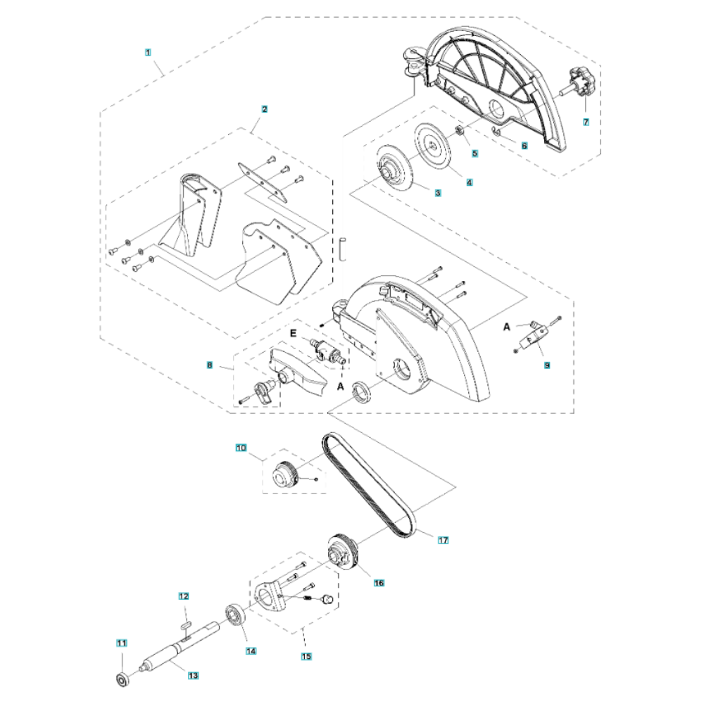 The Blade Guard Assembly for the Husqvarna TS 70 Masonry Saw is designed to enhance safety and performance. This assembly helps protect the user and the blade during operation, ensuring precise cuts and reducing wear. It includes components such as the guard cover and mounting brackets, essential for maintaining optimal functionality.