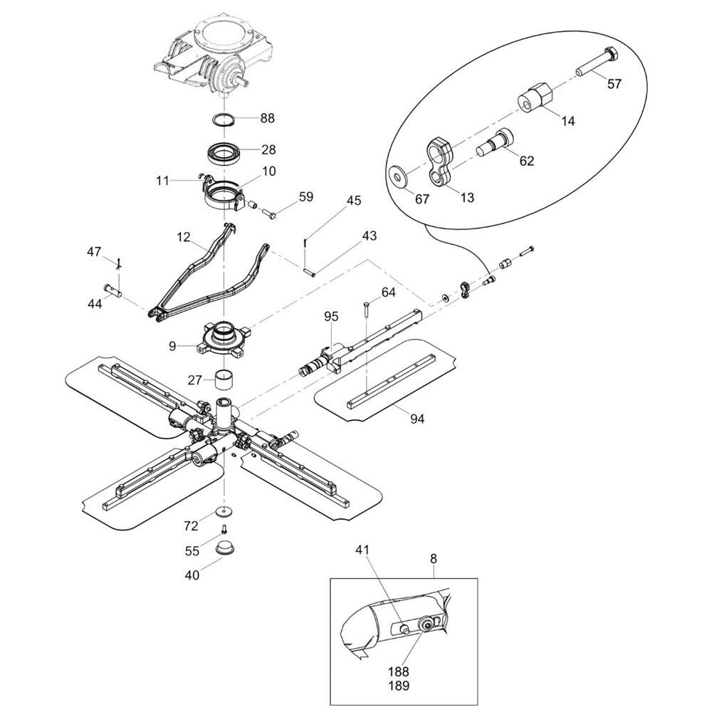 The Blade Mechanism Assembly for the Wacker CT48-13 Trowel is designed to ensure optimal performance and longevity of your walk-behind trowel. This assembly includes key components such as blades, springs, and levers, which work together to provide smooth and efficient operation. Regular maintenance with genuine parts helps maintain the trowel's effectiveness and reliability.