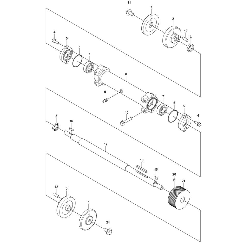 The Blade Shaft Assembly for the Husqvarna FS600 E Floor Saw is crucial for optimal cutting performance. This assembly includes components like bearings, seals, and spacers, ensuring smooth operation and longevity. Designed to maintain the saw's efficiency, it supports precise cutting tasks on construction sites. Genuine Husqvarna parts guarantee compatibility and reliability.