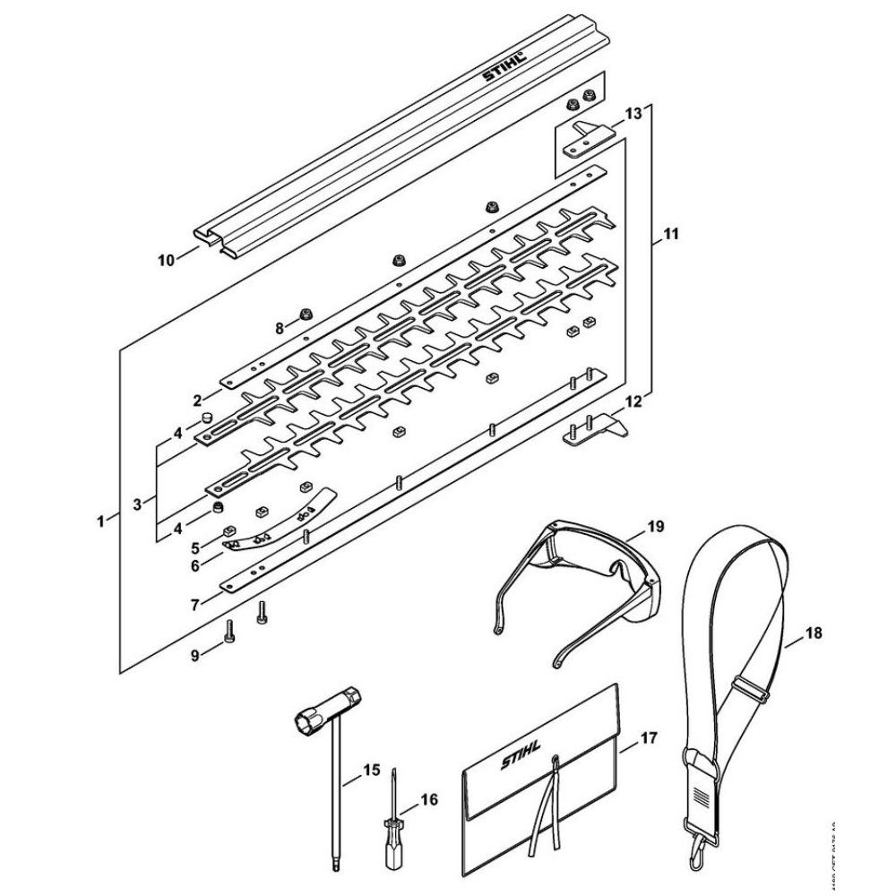 Blade and tools for the Stihl HL 95 Long Reach Hedge Trimmer are essential for maintaining optimal performance. These genuine Stihl parts ensure precise cutting and efficient operation. The selection includes blades and other necessary tools designed to fit the HL 95 model, providing reliability and durability for hedge trimming tasks.