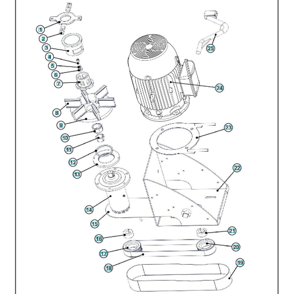 The Blast Wheel Assembly for the Husqvarna BLASTRAC 2-48DS Steel Shot Blaster is designed to ensure efficient operation and longevity of the machine. This assembly plays a crucial role in propelling steel shot at high velocity for surface preparation. It includes components such as blades, control cages, and impellers, all essential for maintaining optimal performance. Genuine Husqvarna parts ensure compatibility and reliability.