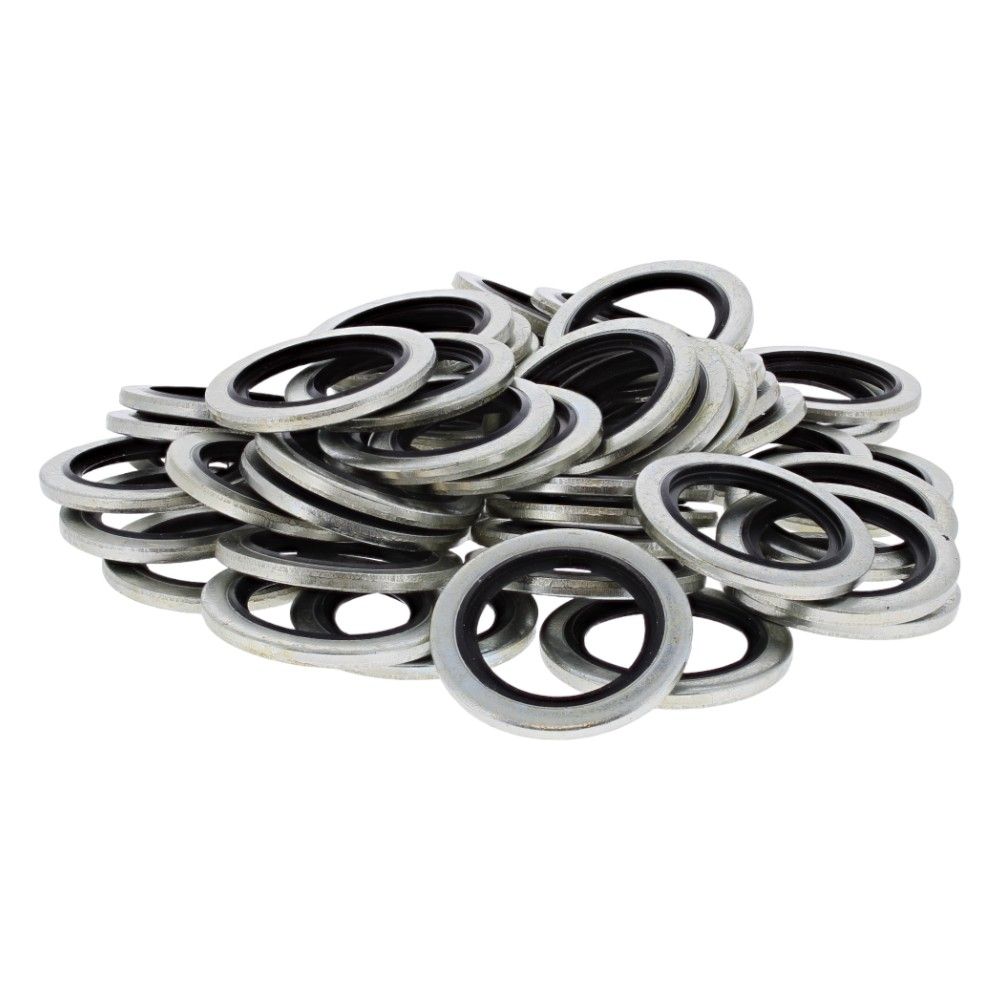 The 5/8" BSP Bonded Seals, also known as Dowty Washers, are essential components designed for creating secure and leak-proof seals in hydraulic and pneumatic systems. Each seal comprises a robust metal washer combined with a flexible rubber sealing element, ensuring durability and adaptability. These seals are particularly effective in high-pressure environments, making them suitable for a variety of applications across industries such as automotive, aerospace, oil and gas, and manufacturing. The pack contains 50 seals, providing ample supply for both immediate use and future needs.