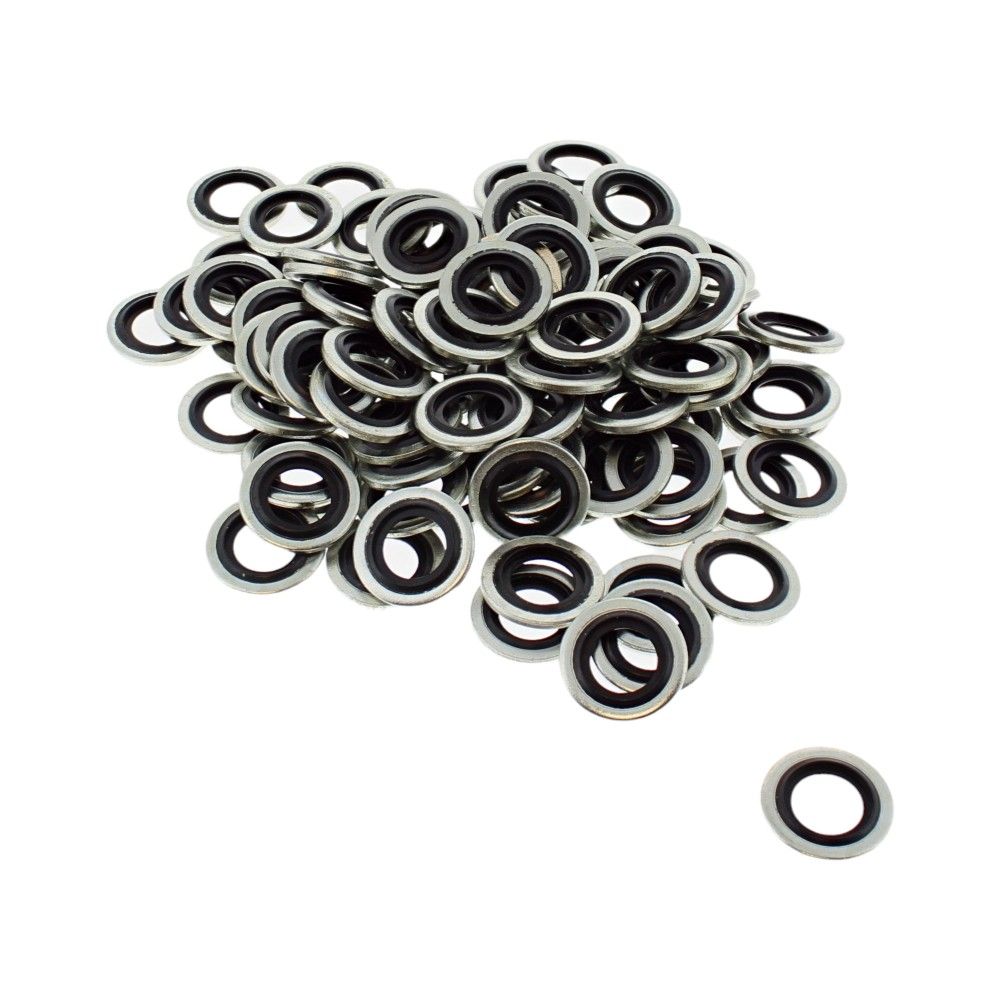 Bonded Seals M10 are combination metal-and-rubber sealing washers designed to provide a reliable, leak-proof joint under hydraulic and pneumatic pressures. Each seal combines a rigid metal washer with a bonded elastomer sealing lip to create a tight, self-energising seal when clamped. Sized for M10 male threads and fittings, they are suitable for use on banjo bolts, adaptors, pumps, cylinders, and valve blocks found on plant, agricultural machinery, compressors, and workshop equipment. The robust metal ring offers stability and load-spreading, while the bonded rubber element accommodates minor surface irregularities for consistent sealing performance. Supplied as a bulk pack of 100 for workshop and site use. Manufacturer Part Number: 915 611.