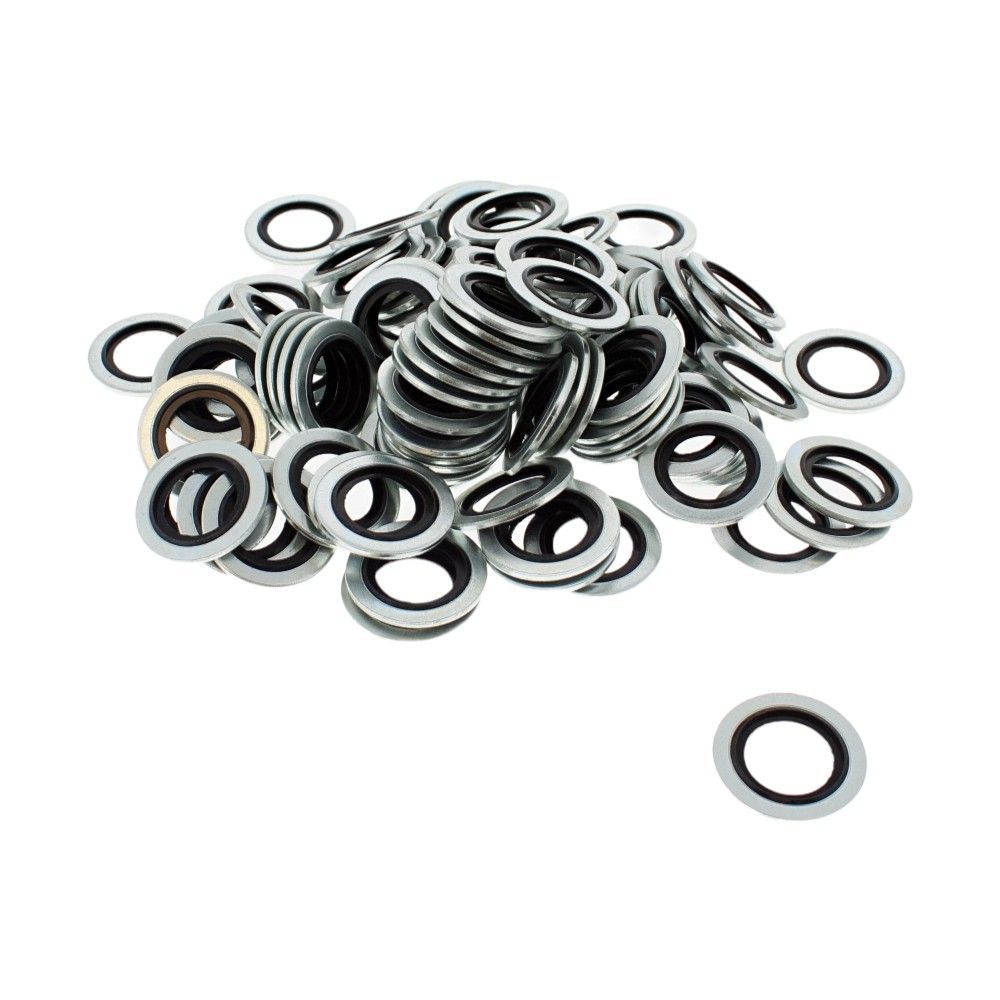These M16 bonded seals are combined metal-and-rubber sealing washers supplied in a bulk pack of 100 for workshop and site use. Each seal has a rigid metal washer that provides clamping strength, with a bonded elastomer lip that compresses on tightening to create a reliable, leak‐tight joint. Designed for use on M16 threaded fittings, banjo bolts, plugs and adaptors, they help prevent fluid or air loss in hydraulic and pneumatic circuits. Suitable for construction plant, agricultural machinery, industrial equipment and general maintenance tasks where high pressures and vibration are common. Used under bolt heads or around male threads, they compensate for minor surface imperfections and reduce the need for additional sealants. Manufacturer Part Number (MPN): 915 613.