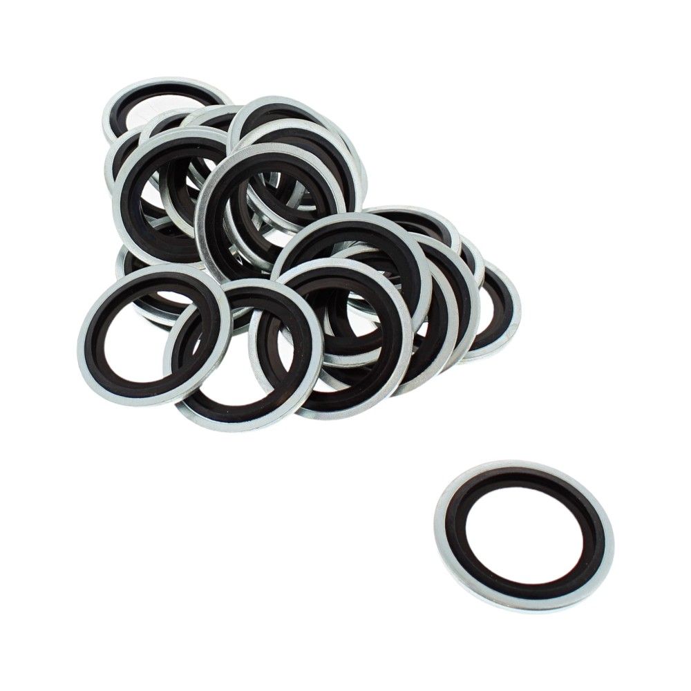 The M24 Bonded Seals - 25 Pack, also known as Dowty Washers, are essential components for ensuring leak-proof connections in hydraulic and pneumatic systems. Each seal is composed of a durable metal washer paired with a rubber sealing element, providing both structural integrity and effective sealing capabilities. These seals are designed to accommodate minor surface imperfections, making them ideal for a wide range of construction and garden machinery. Their metric sizing ensures compatibility with international standards, offering versatility for various applications.