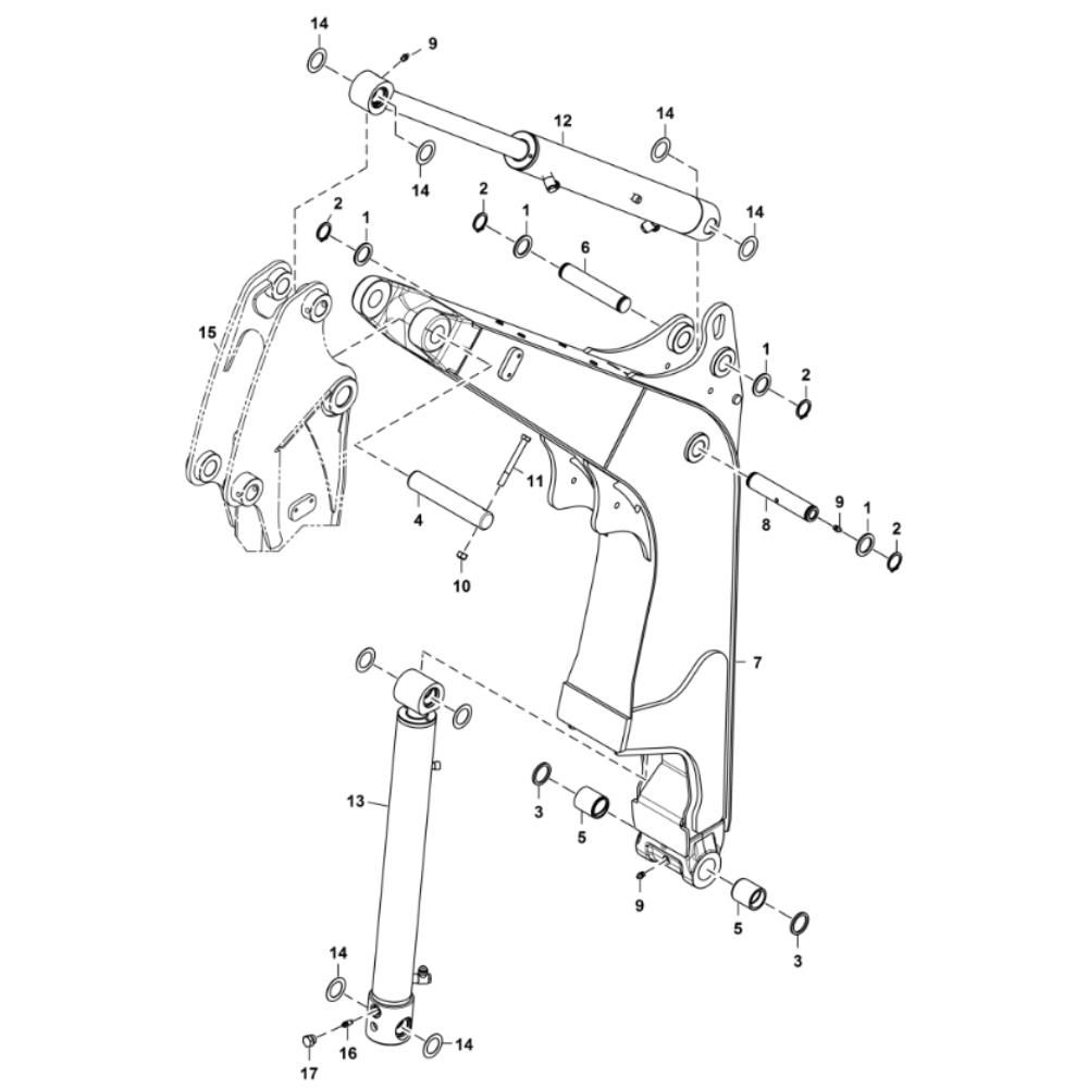 The Boom Assembly for BobCat E26 Mini Excavators, suitable for serial numbers B4B811001 and above, includes essential components for efficient operation. This assembly ensures optimal performance by facilitating precise digging and lifting tasks. Available parts may include hydraulic cylinders, pins, bushings, and brackets, designed to maintain the excavator's functionality and reliability.