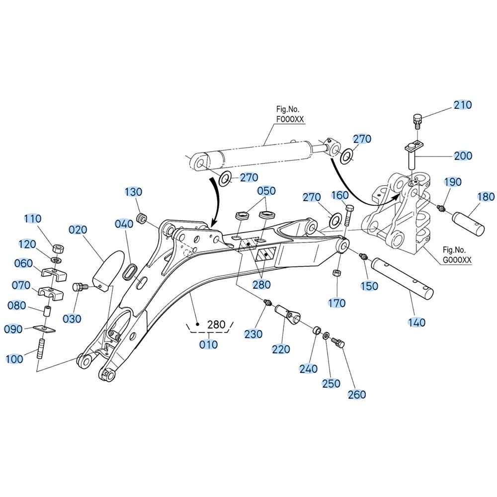 The Boom Assembly for the Kubota U10-5 Mini Excavator is essential for efficient digging and lifting operations. This assembly includes components such as hydraulic cylinders, pins, and bushings, ensuring smooth and precise movement. Designed to fit the Kubota U10-5 model, it supports various construction and landscaping tasks, providing durability and reliability.