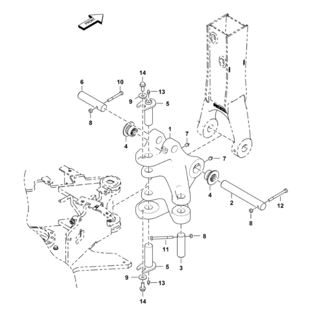 The Boom Swing Frame Assembly for BobCat E10 Mini Excavators is designed to support the boom's lateral movement, enhancing manoeuvrability and precision. This assembly includes components such as pivot pins, bushings, and brackets, ensuring smooth operation and durability. Suitable for models with serial numbers B4K911001 and above, it is available in genuine and non-genuine parts.