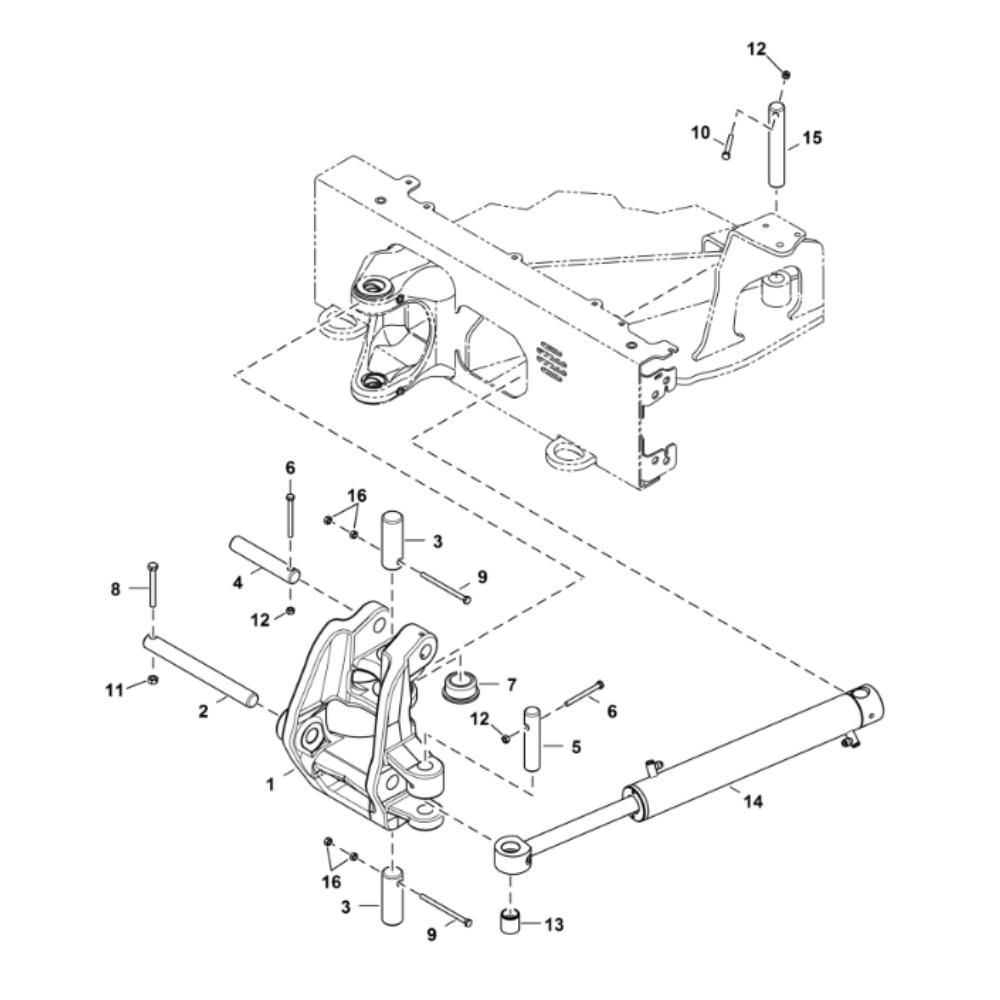 The Boom Swing Frame Assembly for BobCat E20 Mini Excavators is designed to facilitate the smooth operation of the boom swing function. This assembly includes critical components such as pins, bushings, and brackets, ensuring optimal performance and durability. Suitable for serial numbers AWRH11001 to AWRH12764, it supports efficient excavation tasks.
