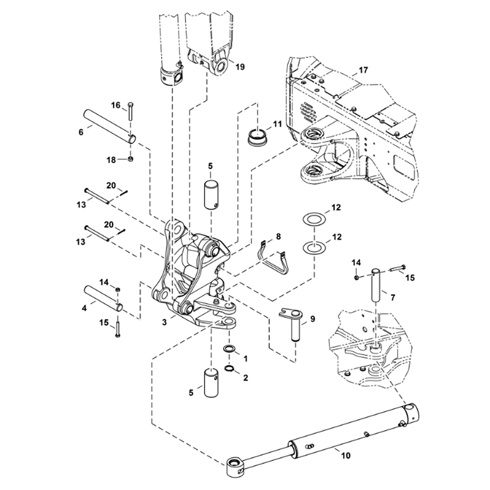 The Boom Swing Frame Assembly for BobCat E26 Mini Excavators is designed to enhance the machine's operational flexibility and efficiency. This assembly includes components such as pivots, bushings, and brackets, ensuring smooth and reliable swing motion. Suitable for models with serial numbers AJRY11001 and above, it supports both genuine and non-genuine parts.