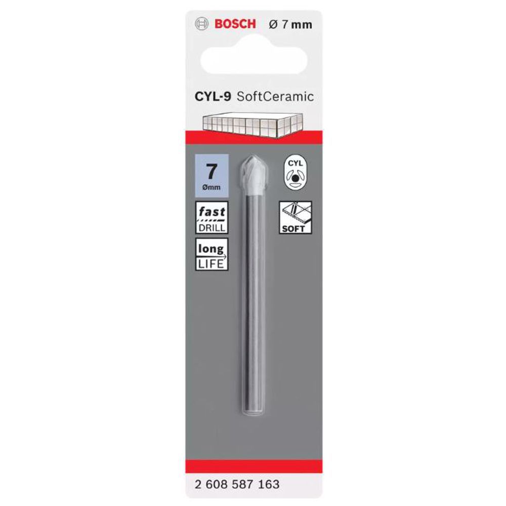 The Bosch CYL-9 SoftCeramic Tile Drill Bit is designed for efficient dry drilling through tiles without the need for lubrication. Its simple flute-less design ensures precise drilling, making it ideal for ceramic surfaces. The cylindrical shank is compatible with three-jaw drill chucks, providing versatility for various drilling tasks.