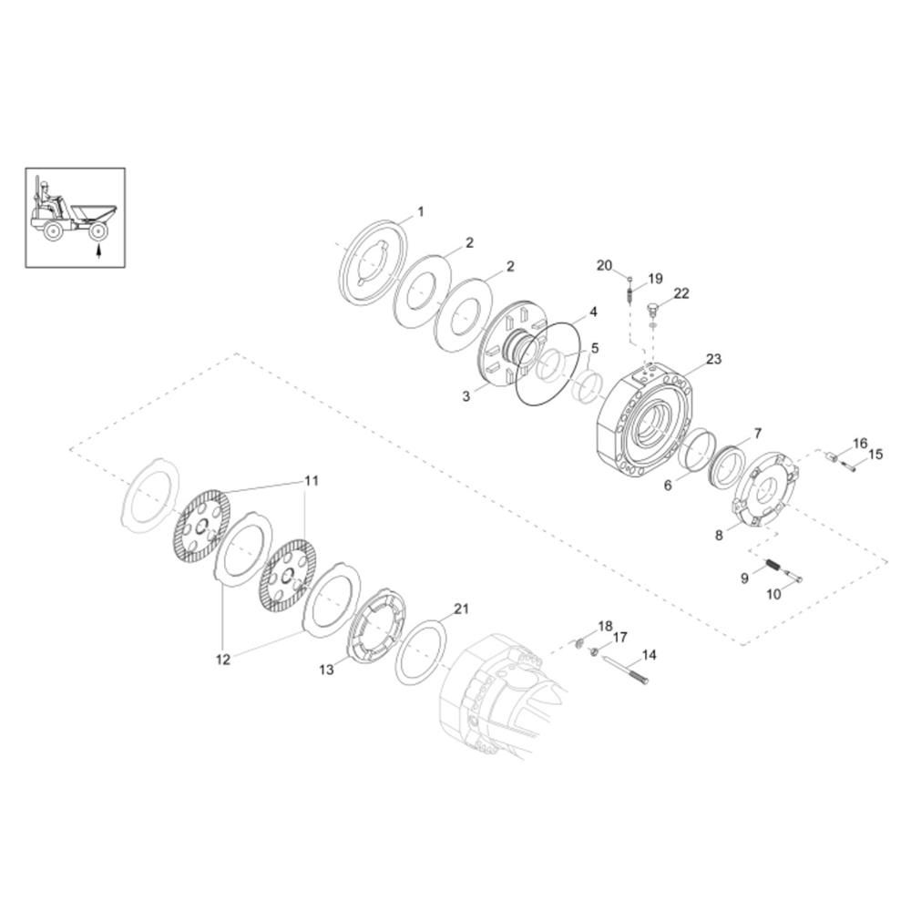 The Brake Assembly for the Wacker DV60 Dumper ensures optimal stopping power and safety during operation. This assembly includes key components such as brake pads, discs, and calipers, designed to work seamlessly with the Wacker Neuson system. Regular maintenance and replacement of these parts help maintain performance and extend the lifespan of your dumper.