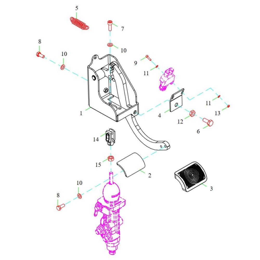 The Brake Pedal Assembly for the Wacker TH522 Telehandler is designed to ensure optimal braking performance and safety. This assembly includes components such as the pedal, springs, and linkage, which work together to provide reliable control. Essential for maintaining the telehandler's operational efficiency, these parts help in reducing wear and ensuring smooth operation. Genuine Wacker Neuson parts guarantee compatibility and durability.