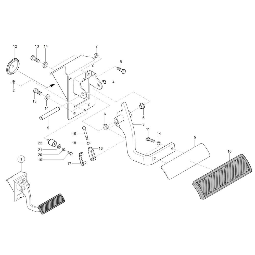 The Brake Pedal Assembly for the Wacker TH955 (416-26) Telehandler is designed to ensure optimal braking performance and safety. This assembly includes components such as the pedal, springs, and linkage, which work together to provide reliable control. Essential for maintaining the telehandler's operational efficiency, it supports smooth and responsive braking action.