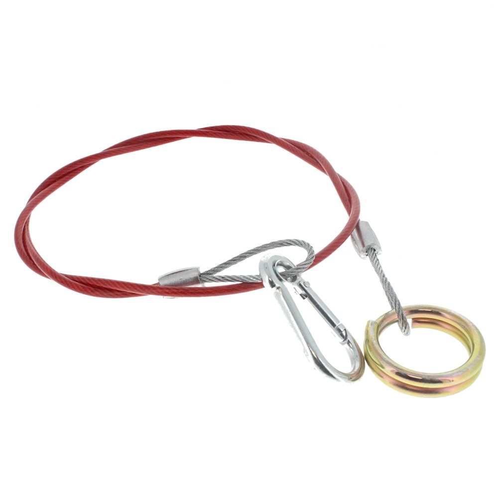 This breakaway cable is a safety link for trailers fitted with an AL-KO 120SR coupling, commonly found on Generac tower lights such as the VB9 and TL90. It is a genuine Al-Ko component, made from durable, PVC-coated steel wire rope with robust crimped ends and steel hardware for a secure connection. The cable provides a fail-safe link between the towing vehicle and the trailer; if separation occurs, it helps prevent uncontrolled movement and can engage the brake lever where fitted. Built for frequent site use, the bright, high-visibility finish aids quick checks during coupling. It is suitable for construction, hire, and maintenance teams who need a reliable, straightforward replacement to keep lighting equipment safe in transit and during on-site moves.