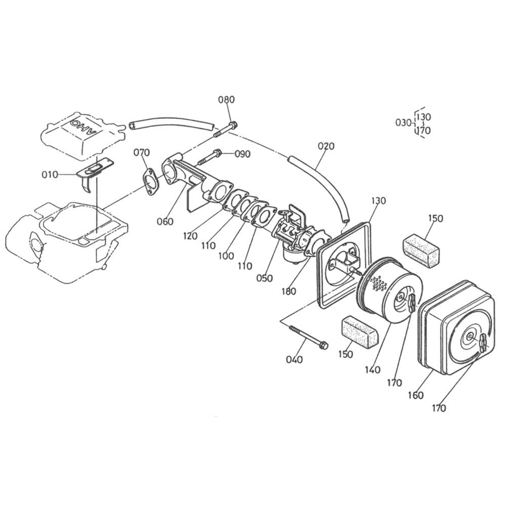 The Breather Assembly for the Kubota GH400 Engine is designed to ensure optimal engine performance by managing crankcase pressure and reducing emissions. This assembly includes components such as valves, hoses, and seals, which work together to maintain engine efficiency and longevity. Genuine Kubota parts ensure compatibility and reliability.
