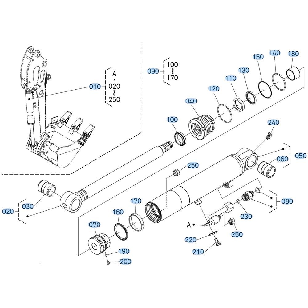 Bucket Cylinder Assembly for Kubota U17-5 Mini Excavator