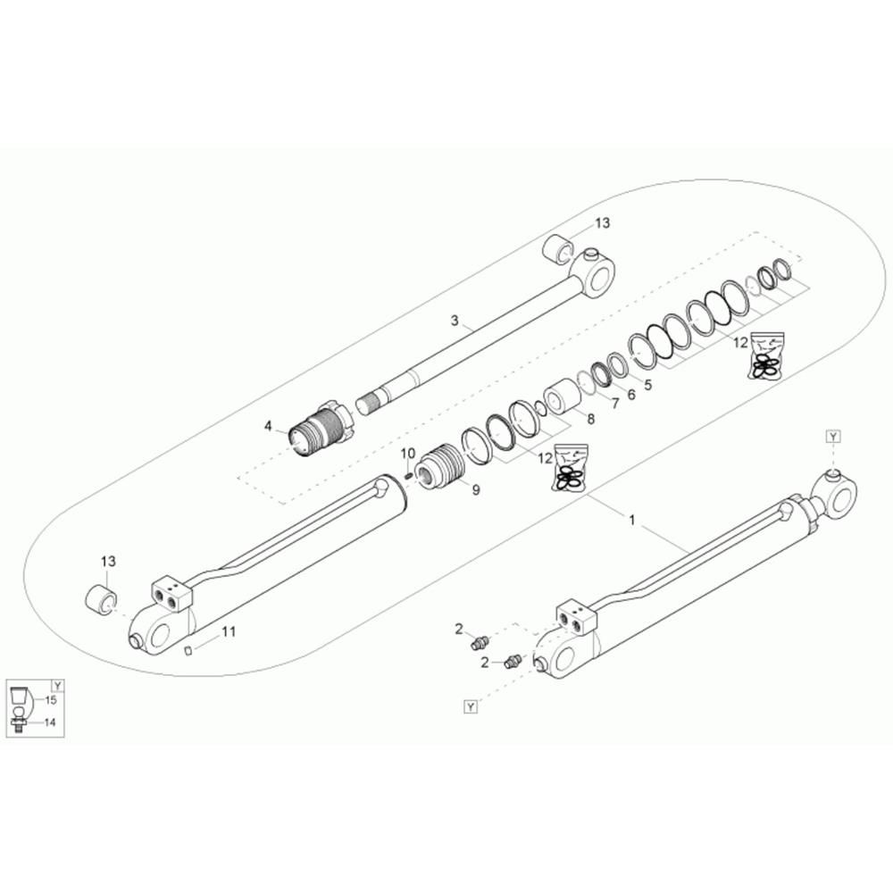 The Bucket Cylinder Assembly for the Neuson 2001 Dumper is essential for efficient hydraulic operation. It includes components that ensure smooth lifting and lowering of the dumper bucket, contributing to optimal performance. Genuine Wacker Neuson parts are designed for durability and reliability, making them ideal for maintaining the functionality of your equipment.