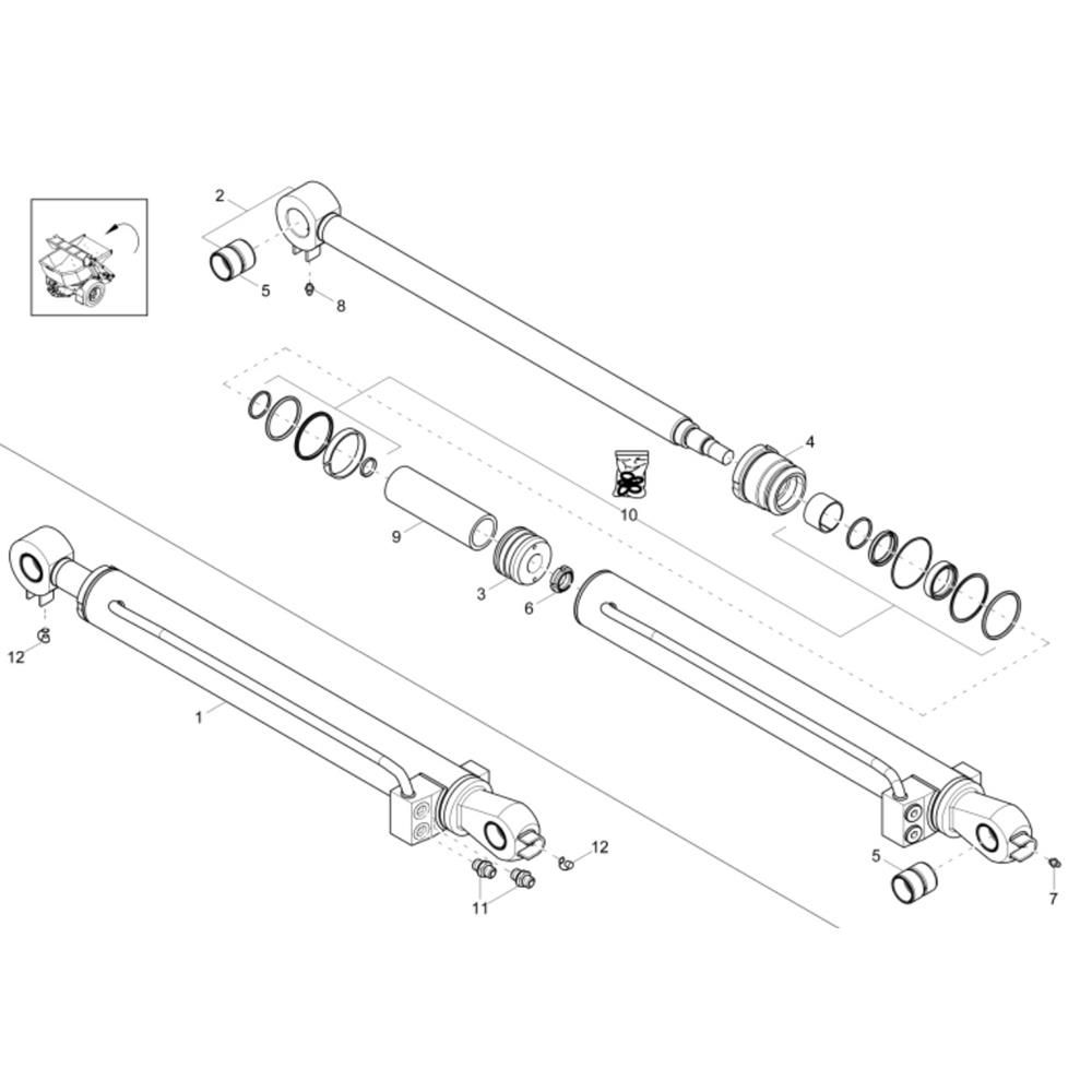 The Bucket Cylinder Assembly for the Wacker DW20 Dumper is designed to ensure efficient operation and durability. This assembly includes key components such as pistons, seals, and rods, which work together to provide smooth and reliable bucket movement. Essential for maintaining optimal performance, it helps in lifting and dumping operations, reducing wear and tear on the machine.