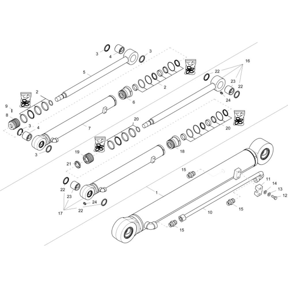 The Bucket Cylinder Assembly for the Wacker EW100 Excavator is essential for efficient digging and lifting operations. This assembly ensures optimal hydraulic performance, contributing to the machine's reliability and longevity. It includes components like pistons, seals, and rods, designed to withstand heavy-duty use and harsh conditions.