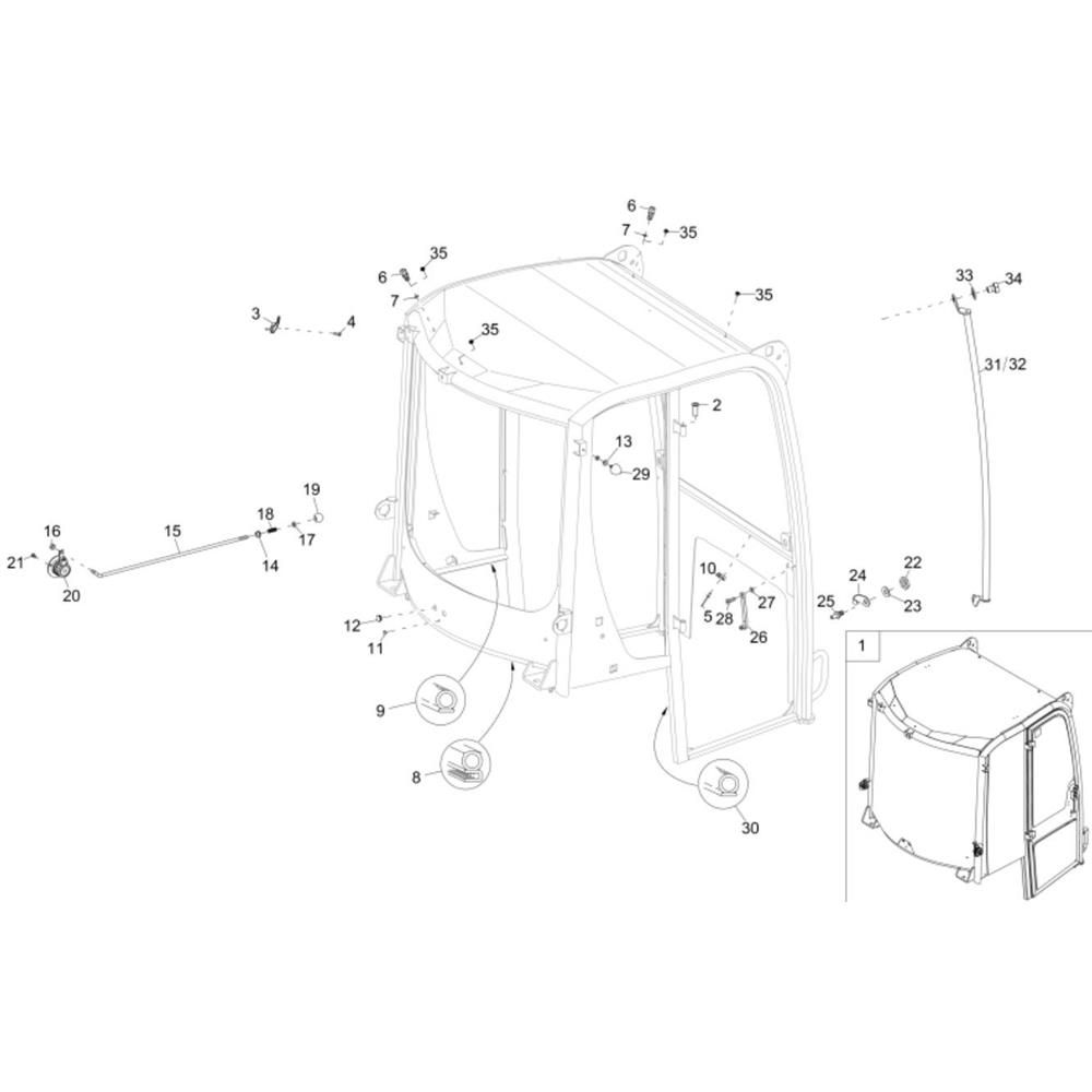 The Cabin Assembly for the Wacker DW90 Dumper is designed to enhance operator comfort and safety. This assembly includes key components such as windows, doors, and control panels, ensuring a secure and efficient working environment. Suitable for routine maintenance and repairs, it helps maintain the dumper's operational integrity and performance.