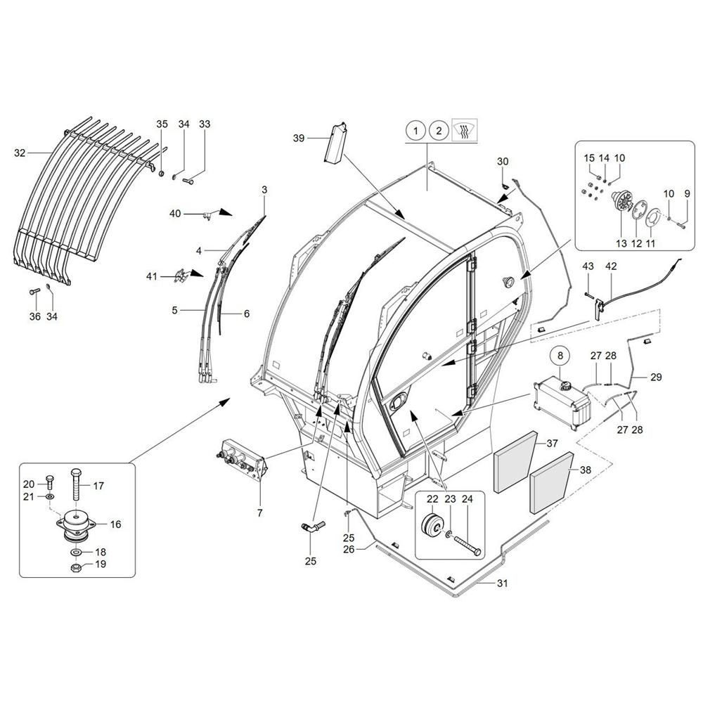 The Cabin Assembly for the Wacker TH730 (415-04) Telehandler is designed to enhance operator comfort and safety. This assembly includes components such as seats, control panels, and windows, ensuring a secure and efficient working environment. Genuine Wacker Neuson parts are used to maintain the telehandler's performance and reliability.