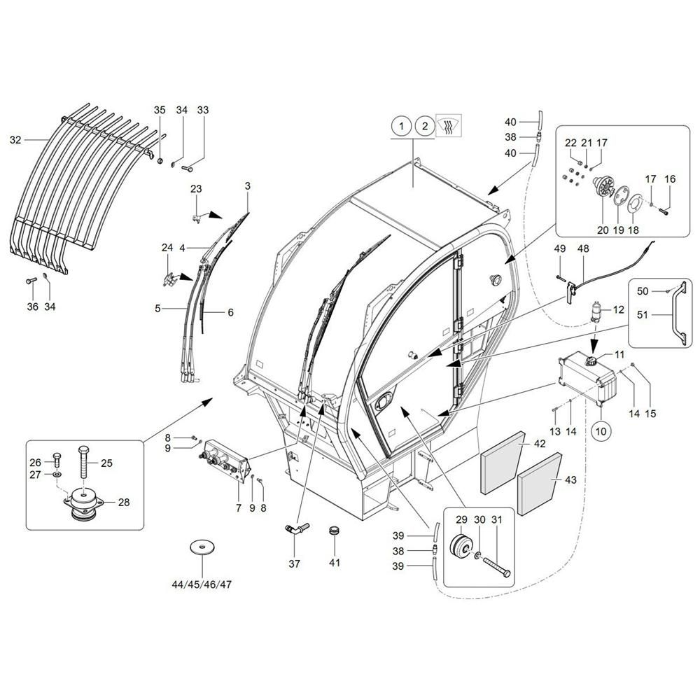 The Cabin Assembly for the Wacker TH955 (416-06) Telehandler is designed to provide a safe and comfortable operating environment. This assembly includes components such as windows, doors, and control panels, ensuring optimal functionality and operator safety. Genuine Wacker Neuson parts are used to maintain high standards of quality and durability.