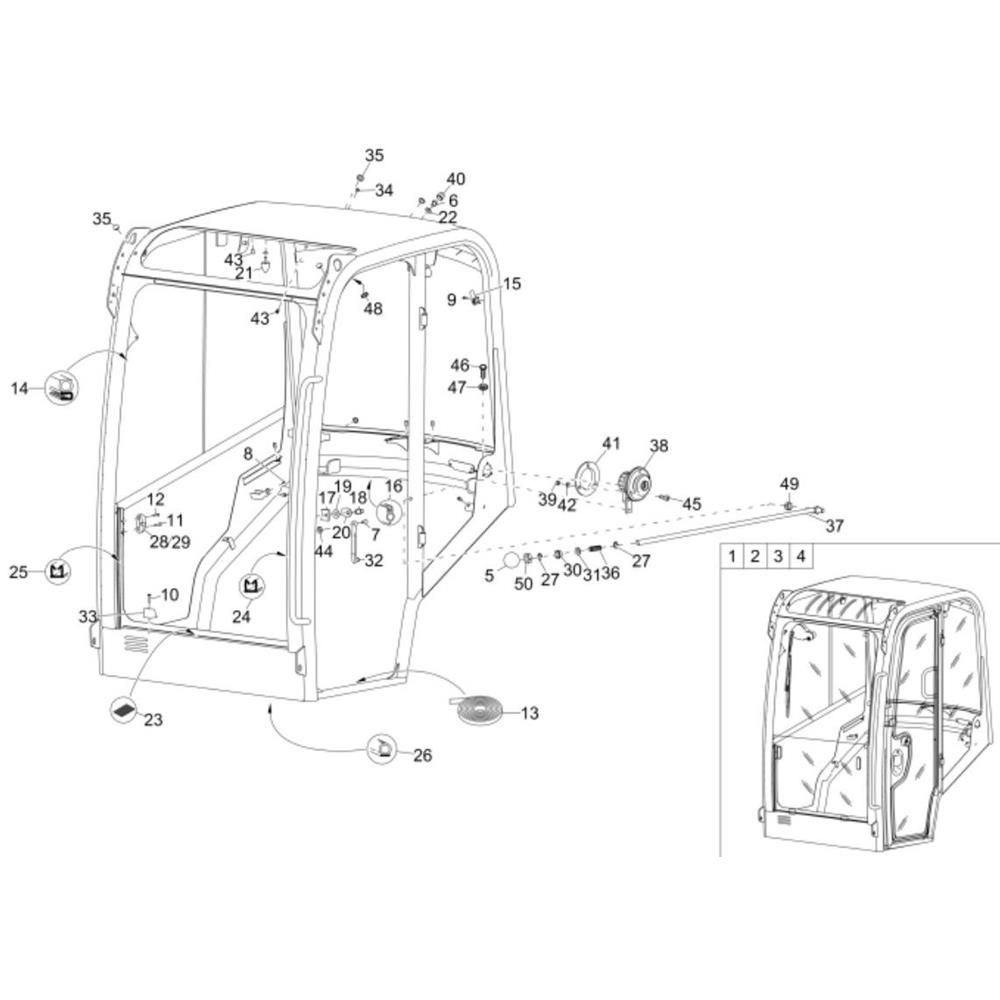 The Cabin Frame Assembly for the Wacker ET24 Mini Excavator is designed to provide structural integrity and safety for operators. This assembly includes key components such as support beams, brackets, and protective panels, ensuring durability and stability during operation. Essential for maintaining the excavator's functionality, it is a crucial part of the machine's overall performance.