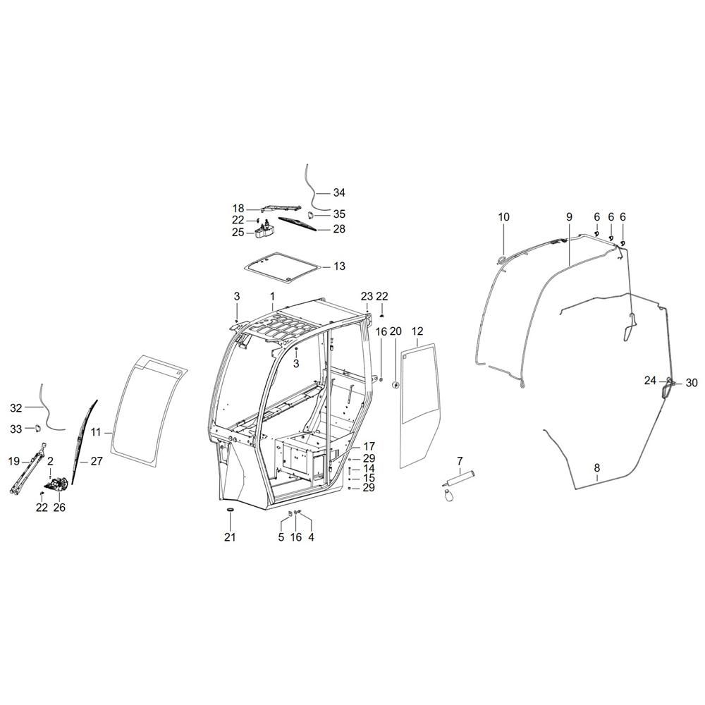 The Cabin Frame Assembly for the Wacker TH412 Telehandler is designed to ensure operator safety and comfort. This assembly includes key components such as structural supports, panels, and mounts, which are essential for maintaining the integrity and functionality of the telehandler's cabin. Genuine Wacker Neuson parts ensure compatibility and reliability, supporting efficient operation in various environments.