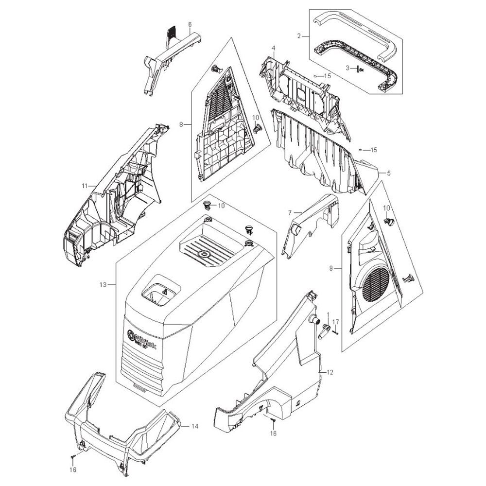 The cabinet for the Nilfisk MH 6P-175/1250 FAX Pressure Washer is designed to house and protect essential components of the machine. It ensures durability and reliability during operation, safeguarding internal parts from environmental factors. This genuine Nilfisk part is crucial for maintaining the pressure washer's performance and longevity.