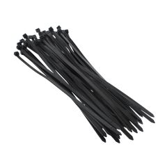 Black Cable Ties 4.8mm x 200mm, 100 Pack are durable, general‐purpose fasteners made from high‐grade nylon 6.6. They are used to bundle and secure cables, hoses, small pipes, and components in workshops, on site, and around construction or garden machinery. Each tie features a smooth strap and an integral locking head that grips as it is tightened, providing a firm, reliable hold with minimal effort. The black finish is discreet and suits tidy, professional installations. Nylon 6.6 offers high tensile strength, is non‐conductive, and resists many common oils and greases, making these ties useful across electrical, plumbing, and maintenance tasks. Supplied in a practical 100 pack for everyday jobs and spares. Size per tie: 4.8mm wide x 200mm long. MPN: 245 191.