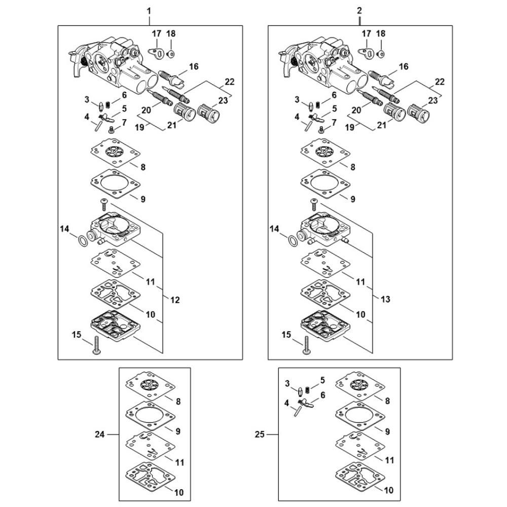The Carburetor Assembly for Stihl MS182 Chainsaws is a genuine Stihl part designed to ensure optimal engine performance. This assembly plays a crucial role in mixing air and fuel for combustion, enhancing efficiency and power output. Components typically include gaskets, diaphragms, and adjustment screws, all vital for maintaining the chainsaw's reliability and longevity.
