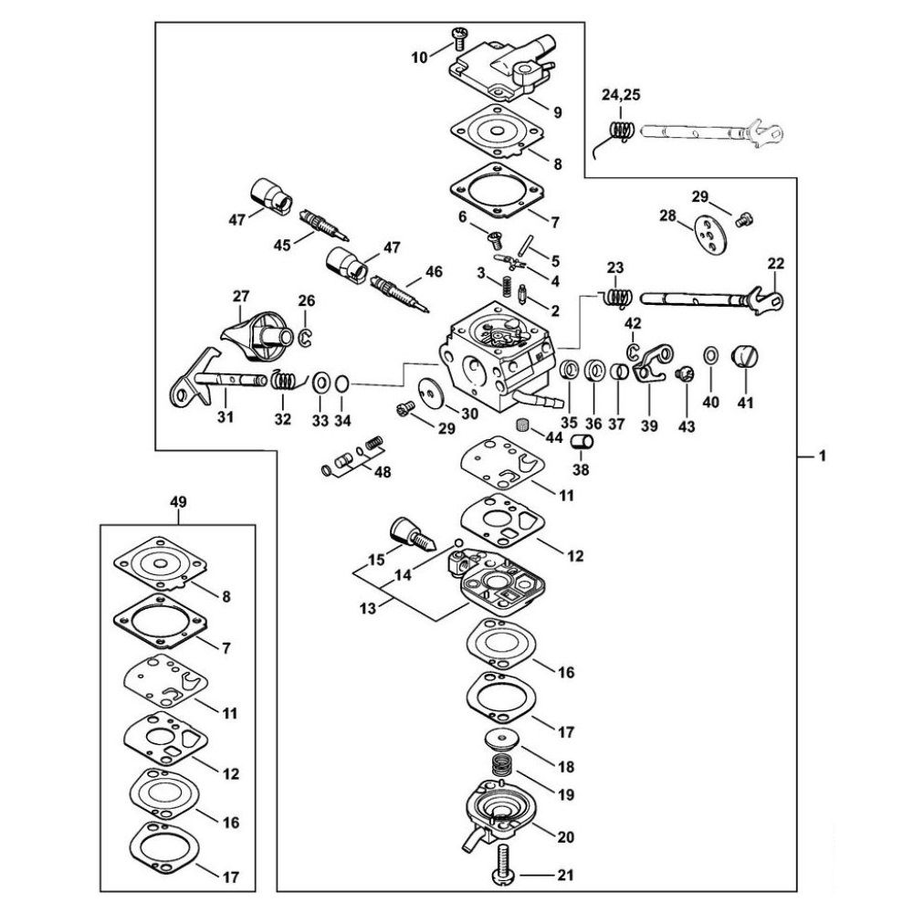 The Carburetor C1Q-S100 is designed for the Stihl BR 600 Leaf Blower, ensuring optimal fuel and air mixture for efficient engine performance. This genuine Stihl part helps maintain the blower's reliability and longevity. Essential for routine maintenance, it includes components like gaskets and diaphragms to ensure smooth operation.
