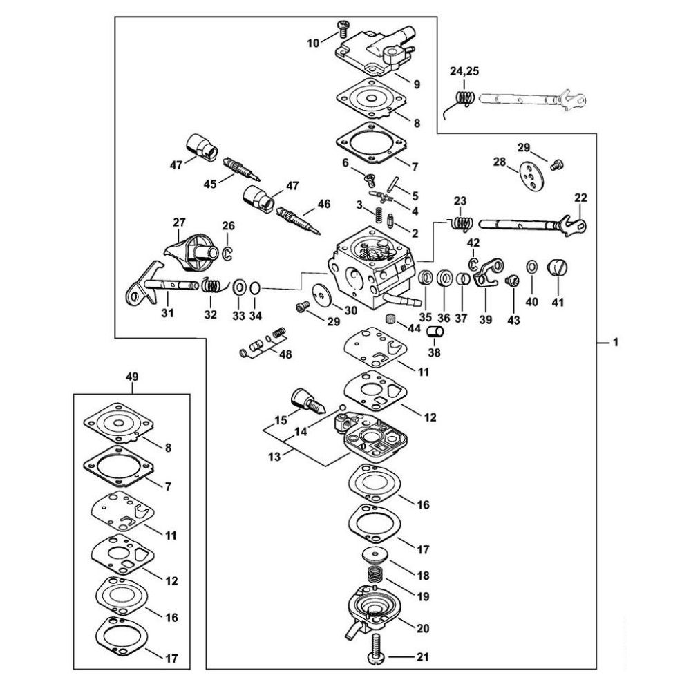 The Carburetor C1Q-S101 is designed for the Stihl BR 550 Leaf Blower, ensuring optimal engine performance by mixing air and fuel efficiently. This component is crucial for maintaining the blower's power and reliability. Available in both genuine and non-genuine options, it includes essential parts like gaskets and springs to support smooth operation.