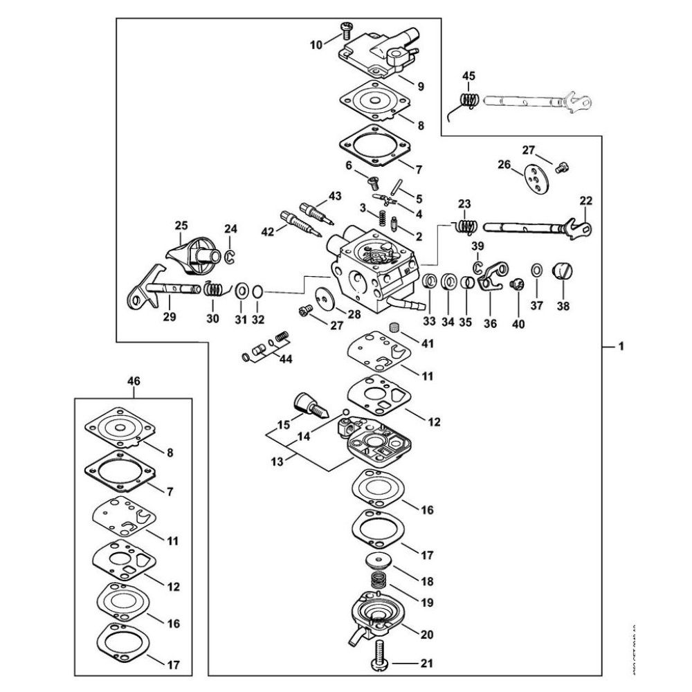 The Carburetor C1Q-S185 is designed for the Stihl BR 550 Leaf Blower, ensuring optimal fuel and air mixture for efficient engine performance. This assembly includes components like gaskets, diaphragms, and springs, crucial for maintaining the blower's reliability and longevity. Available in both genuine and non-genuine options, it supports routine maintenance and repairs.