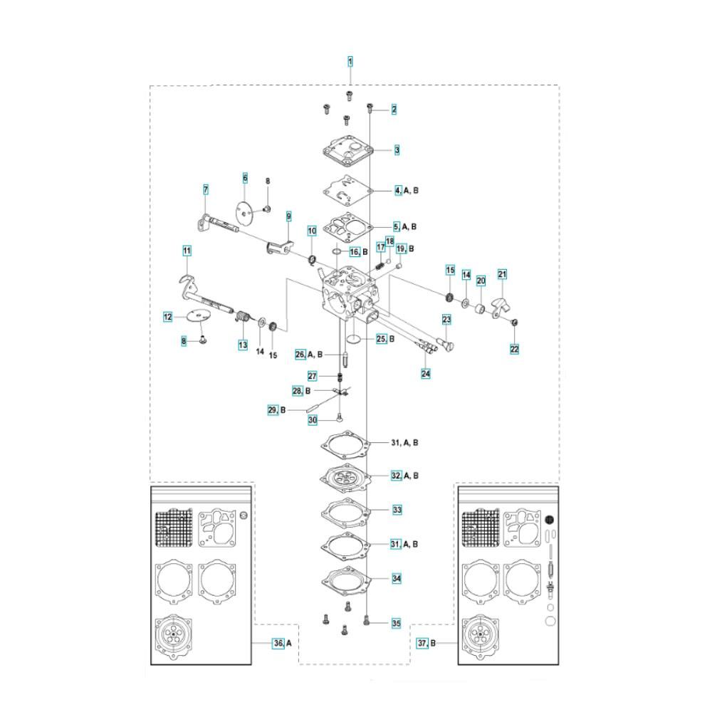 The Carburettor Assembly for the Husqvarna K960 Chain Concrete Cutter is essential for optimal performance. It ensures efficient fuel mixing and delivery, contributing to the machine's power and reliability. Key components include gaskets, springs, and levers, all designed to maintain the cutter's functionality. This assembly supports routine maintenance and repair, ensuring the cutter operates smoothly and effectively.