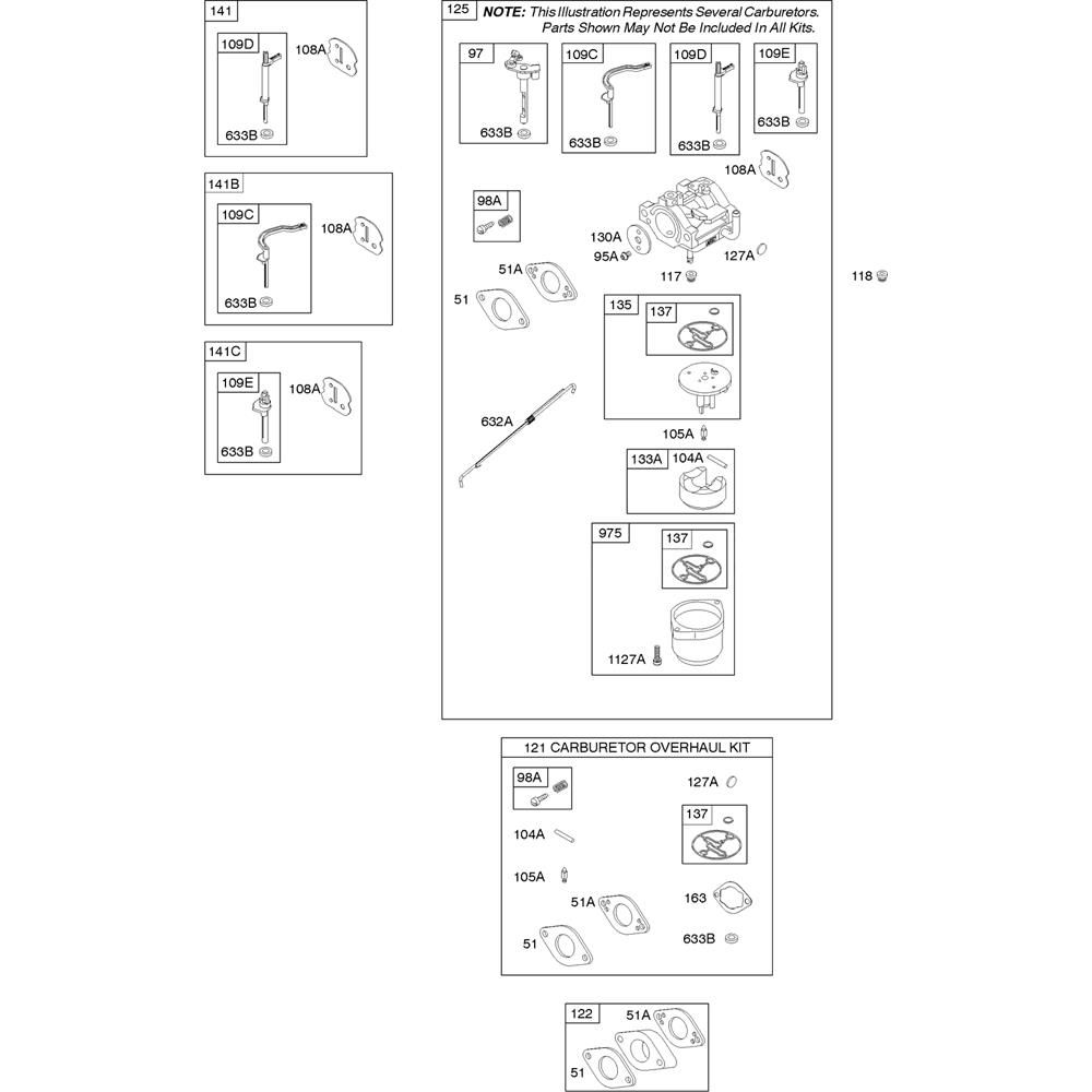 The Carburettor Assembly for Briggs and Stratton Model No.20S237-0042-F1 is designed for the 1400 Series Horizontal Shaft Engine. This assembly ensures optimal fuel and air mixture for efficient engine performance. It includes components such as gaskets, springs, and levers, available in both genuine and non-genuine parts.