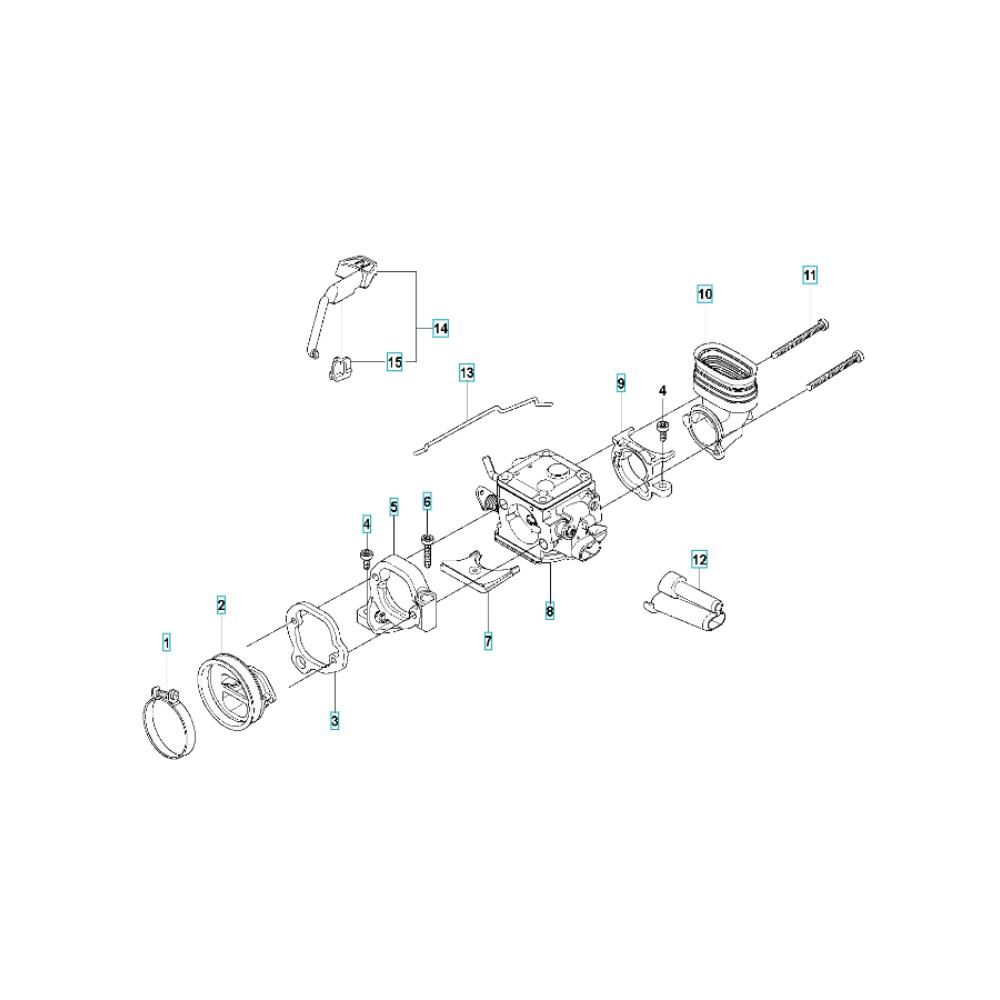 The Carburettor Assembly for the Husqvarna K960 Chain Concrete Cutter ensures optimal fuel-air mixture for efficient engine performance. This assembly includes components such as gaskets, springs, and levers, crucial for maintaining the cutter's reliability and longevity. Designed for precise fuel delivery, it supports consistent cutting operations.