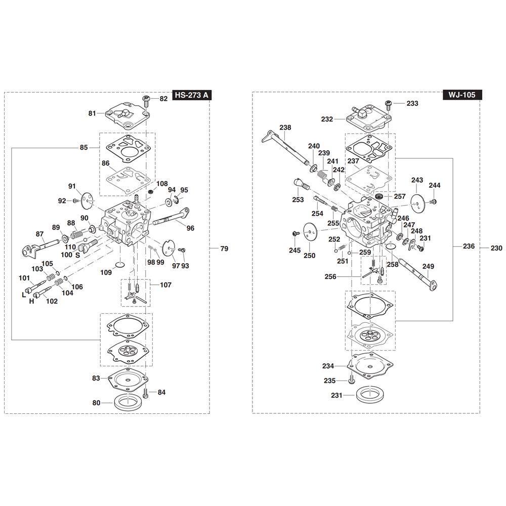 The Carburettor Assembly for the Makita DPC8112 Disc Cutter is essential for optimal engine performance. This assembly ensures efficient fuel mixing and delivery, crucial for maintaining the cutter's power and reliability. Components may include gaskets, springs, and levers, all designed to fit seamlessly with the Makita DPC8112 model.