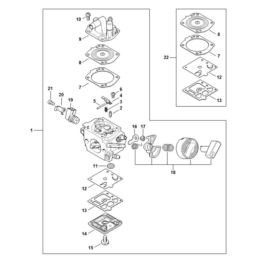 The Carburettor Assembly for the Stihl FS561 C-EM Clearing Saw is designed to ensure optimal fuel and air mixture for efficient engine performance. This assembly includes components such as gaskets, diaphragms, and springs, which are crucial for maintaining the saw's reliability and longevity. Regular maintenance with genuine parts helps in achieving consistent operation.