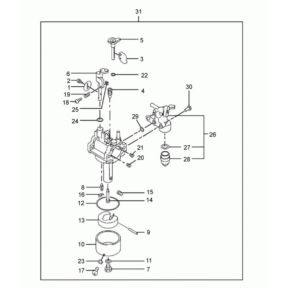 The Carburettor Assembly for the Wacker VP2050R Compactor is essential for optimal engine performance. It ensures efficient fuel mixing and delivery, contributing to the machine's reliability and longevity. This assembly includes components such as gaskets, springs, and levers, all designed to maintain the compactor's operational efficiency. Regular maintenance with genuine parts helps prevent engine wear and ensures consistent compaction results.