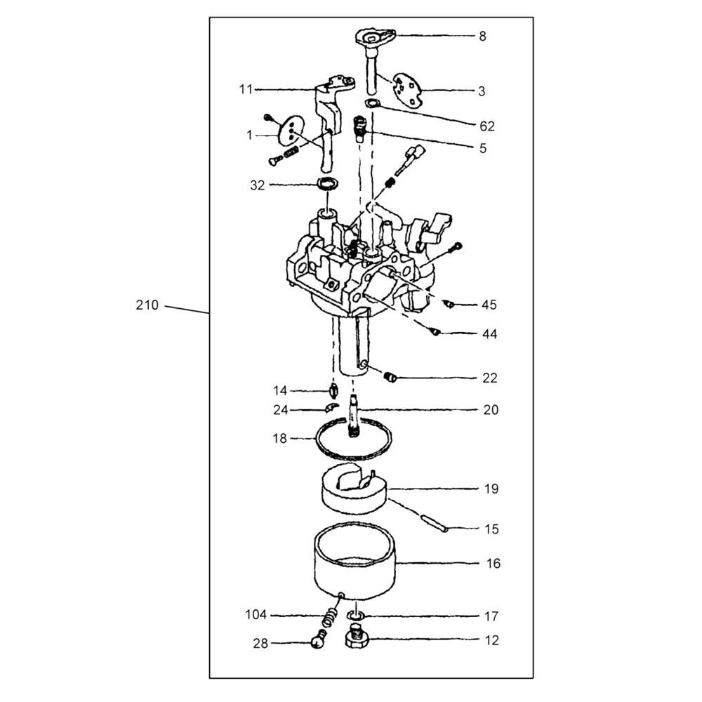 The Carburettor Assembly for the Wacker WM 130 Engine is designed to ensure optimal fuel and air mixture for efficient engine performance. This assembly includes components such as gaskets, springs, and levers, which are essential for maintaining the engine's reliability and longevity. Genuine Wacker Neuson parts guarantee compatibility and durability, making them ideal for routine maintenance and repairs.
