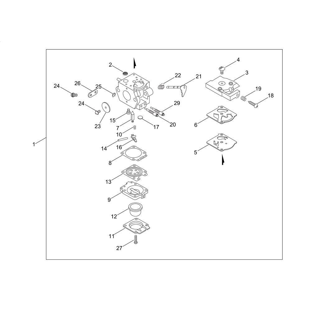 The carburettor for the Shindaiwa EB250 Blower is a crucial component for regulating the air-fuel mixture, ensuring optimal engine performance. Genuine Shindaiwa parts are designed to fit perfectly and maintain the blower's efficiency. This assembly includes essential elements like gaskets, springs, and levers, which are vital for smooth operation and longevity.